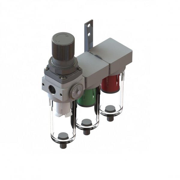 Uma composição de diferentes graus de filtração confere ao ar comprido elevada qualidade com isenção de particulados, de cheiro e de gosto do ar comprimido. Pode ser configurado com diferentes tipos de copos e de drenagem.