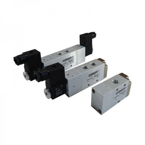 Válvulas direcionais de bitola 1/4" com atuação elétrica ou pneumática. Conta com conjunto completo de montagem: 3/2, 5/2 e 5/3. A série VN diferencia-se pela sua robustez e fácil manutenção. Versão para montagem avulsa ou vertical para Bloco Manifold.