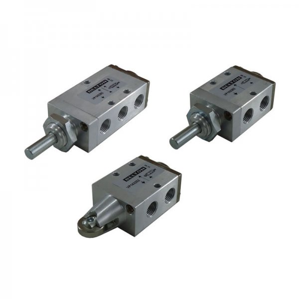 Linha de válvulas direcionais de bitola 1/4" com atuações Mecânicas. Conta com conjunto completo de montagem: 3/2 vias, 5/2 vias e acionamentos pino e rolete. A série VN14 é de construção compacta, robusta e de fácil manutenção