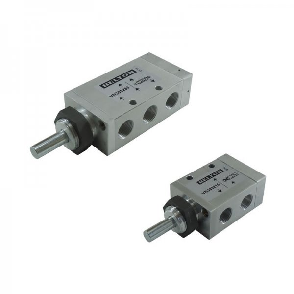 Linha de válvulas direcionais de bitola 3/8" de atuação mecânica Pino. Conta com conjunto completo de montagem: 3/2 vias, 5/2 vias. A série VN38 é de construção compacta, robusta e de fácil manutenção.
